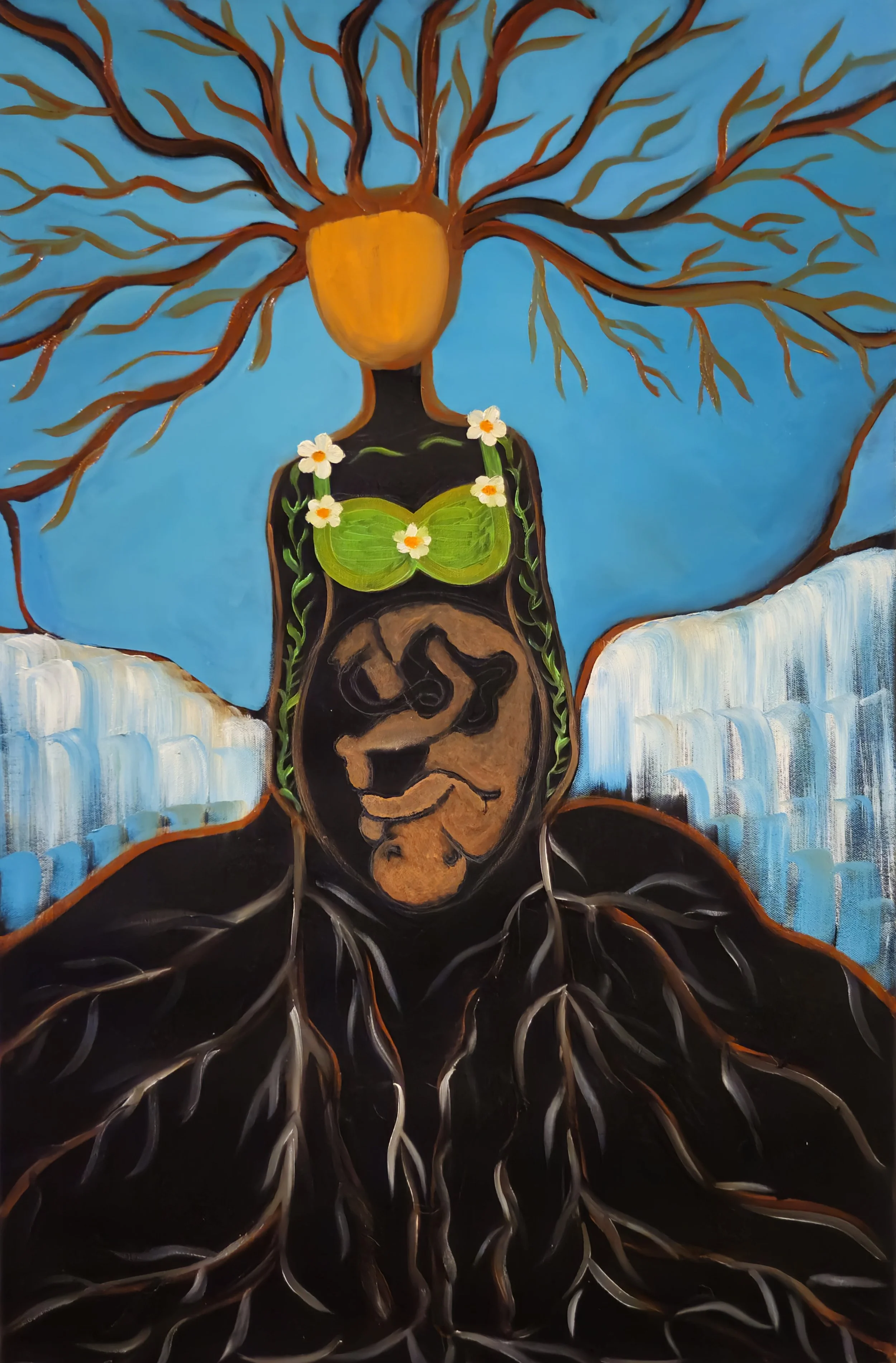 My first inspiration for art came from a dream I had on my late father’s birthday on October 9th 2021. In the dream he gave me a gift in my hand and when I awake that morning I had a really strong urge to paint. I had no idea at the time where that feeling even came from. All I know is that I wanted to paint really bad. So I sent my eldest son to get me some paint and canvas. My first painting, I drew the girls eye closed and I remember how intimidated I felt trying to open her eyes with the paint brush. It felt so important for me to paint her eyes open. As her eyes started coming to life, so did my skills with the canvas and brush. I am self taught I have not taken any painting lessons . My ideas come through dreams and mediations and days in the life, while living. I have been painting since that day I had that dream with my dad. it’s not until about a week later I had time to process that all this happen on the night of my dads birthday. It’s almost like he gave me a gift .Nine months after on July 9th I had my first show at Railroad park. It was that day of the show I realized, I had birth and idea so I called the event my “baby shower”. Three months after that I did another big showing at the conjure fest in Birmingham. I am just an Island girl who discovered that she loves to paint and I am so grateful that I have an opportunity to share my gift from my dad with the world.